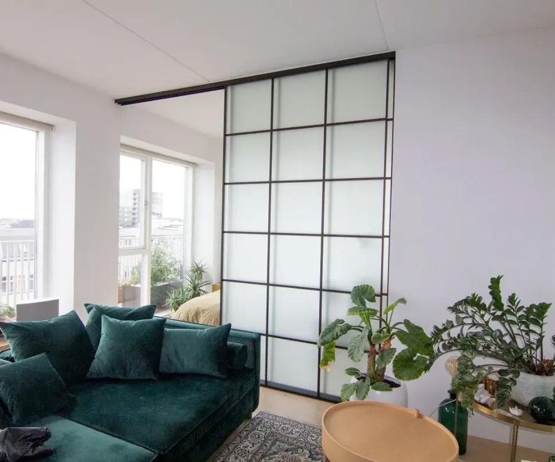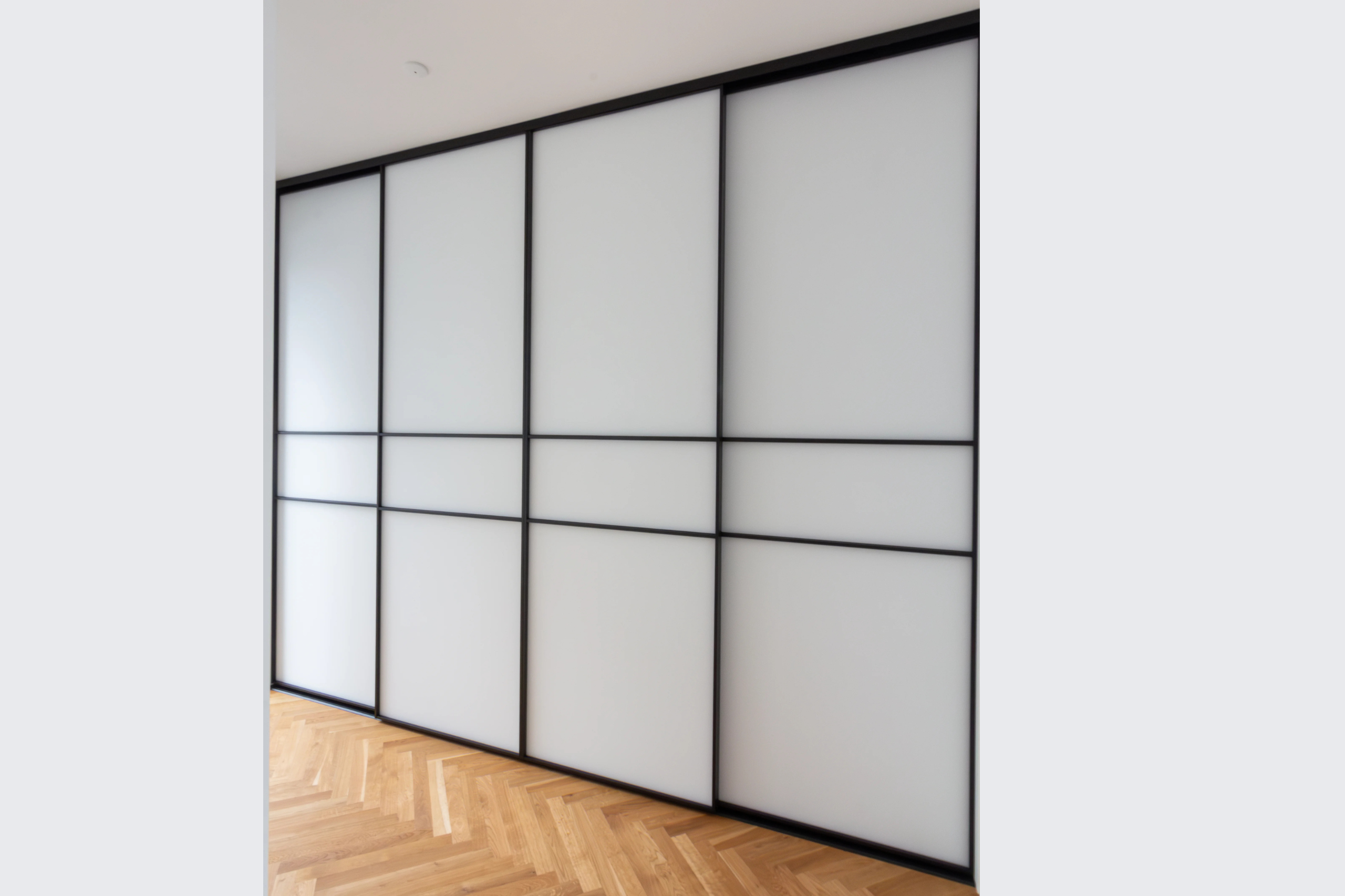 Our sliding doors can be easily integrated with partitions in a coherent design aesthetic, without compromising functionality.